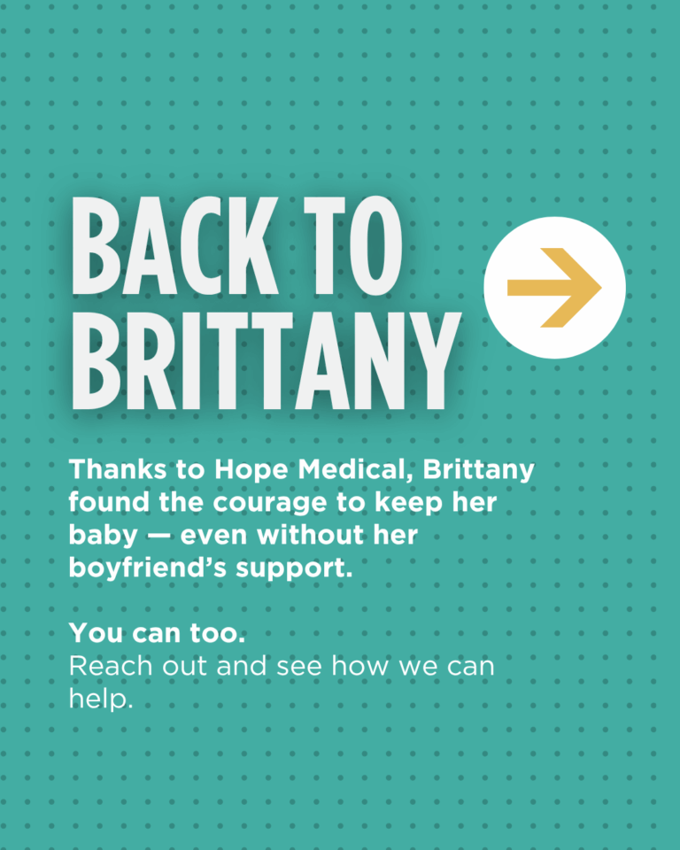 Brittany felt calmer as she talked about all her feelings while her client advocate listened. She expected the woman to say something judgmental, but instead she highlighted all the resources they could offer her. Hope Medical has free diapers, baby supplies, and classes for single parents and parents-to-be.