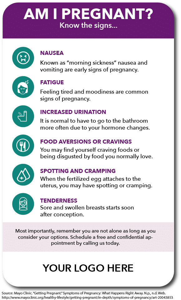 If you’ve experienced any of these pregnancy signs and symptoms or have received a positive pregnancy test and want further information, give us a call. You do not have to go through this time in your life alone and your prenatal care is of the utmost importance. We’re here to help.